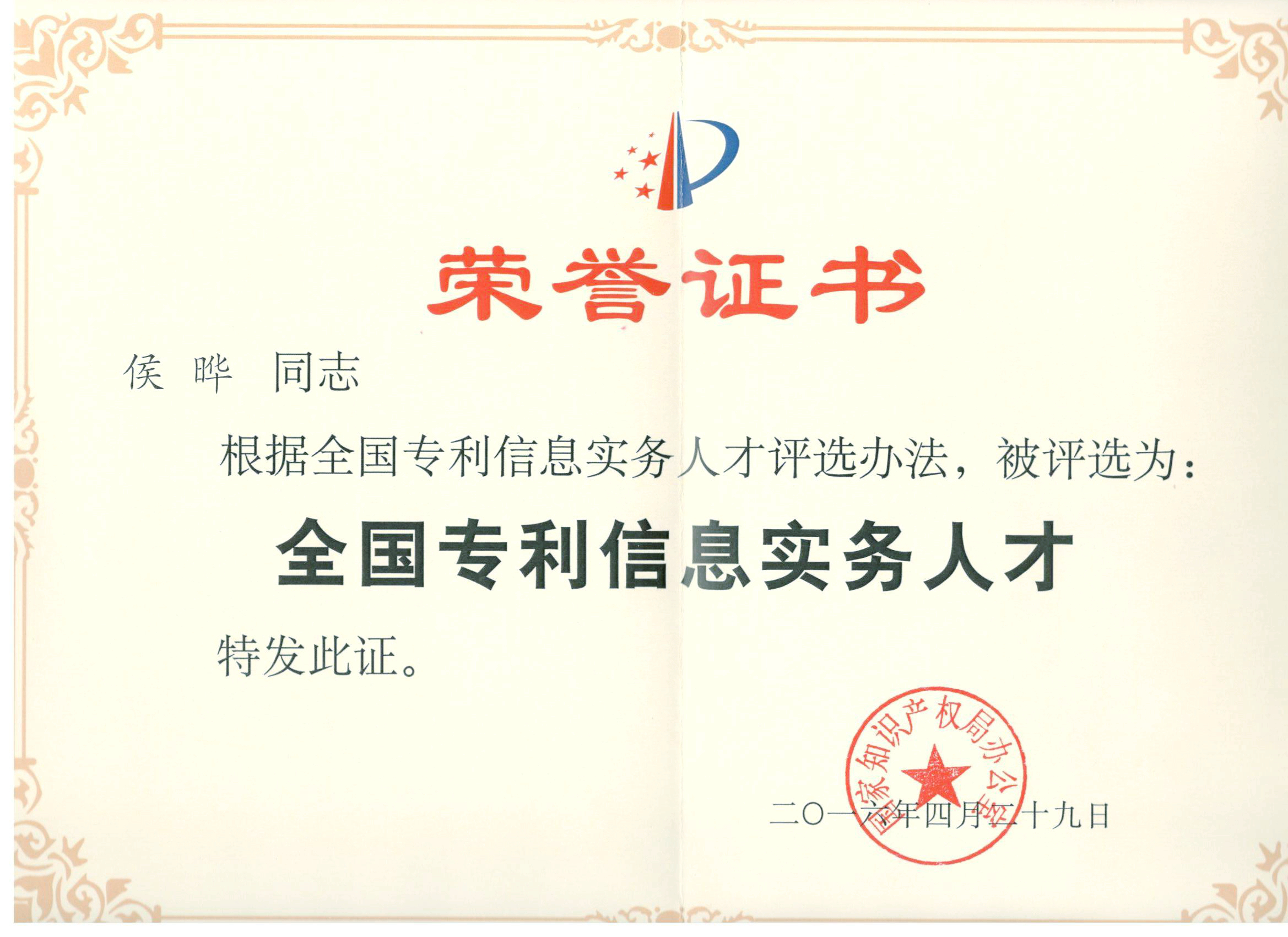 Mr. Ye Hou designated as First-Cohort National Patent Information Specialist