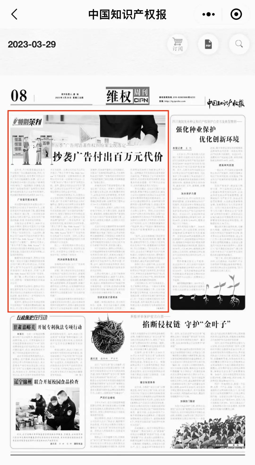 Case handled by Mr. Fengfeng Hu , Ms. Tan Meng spotlighted in China Intellectual Property News