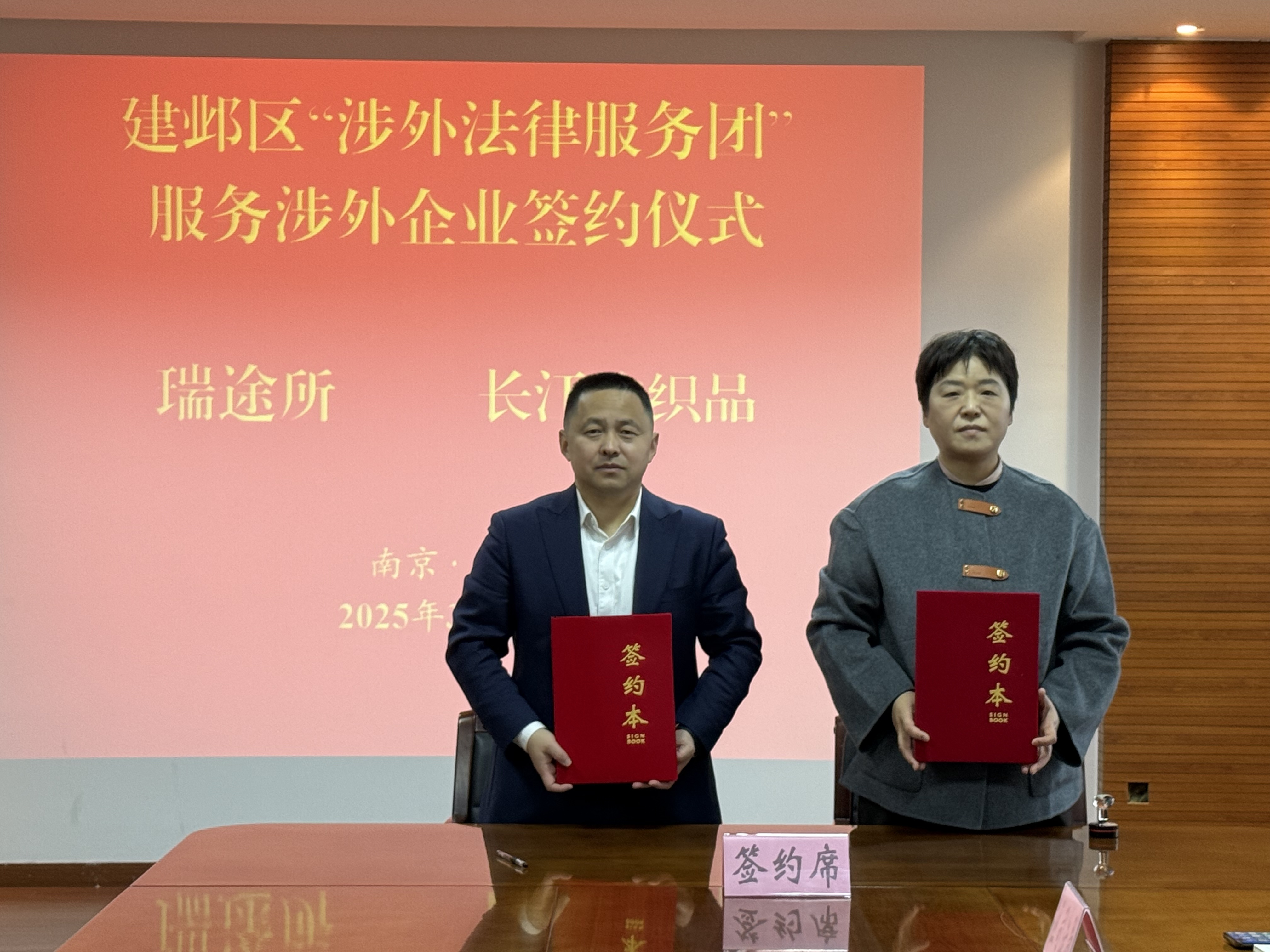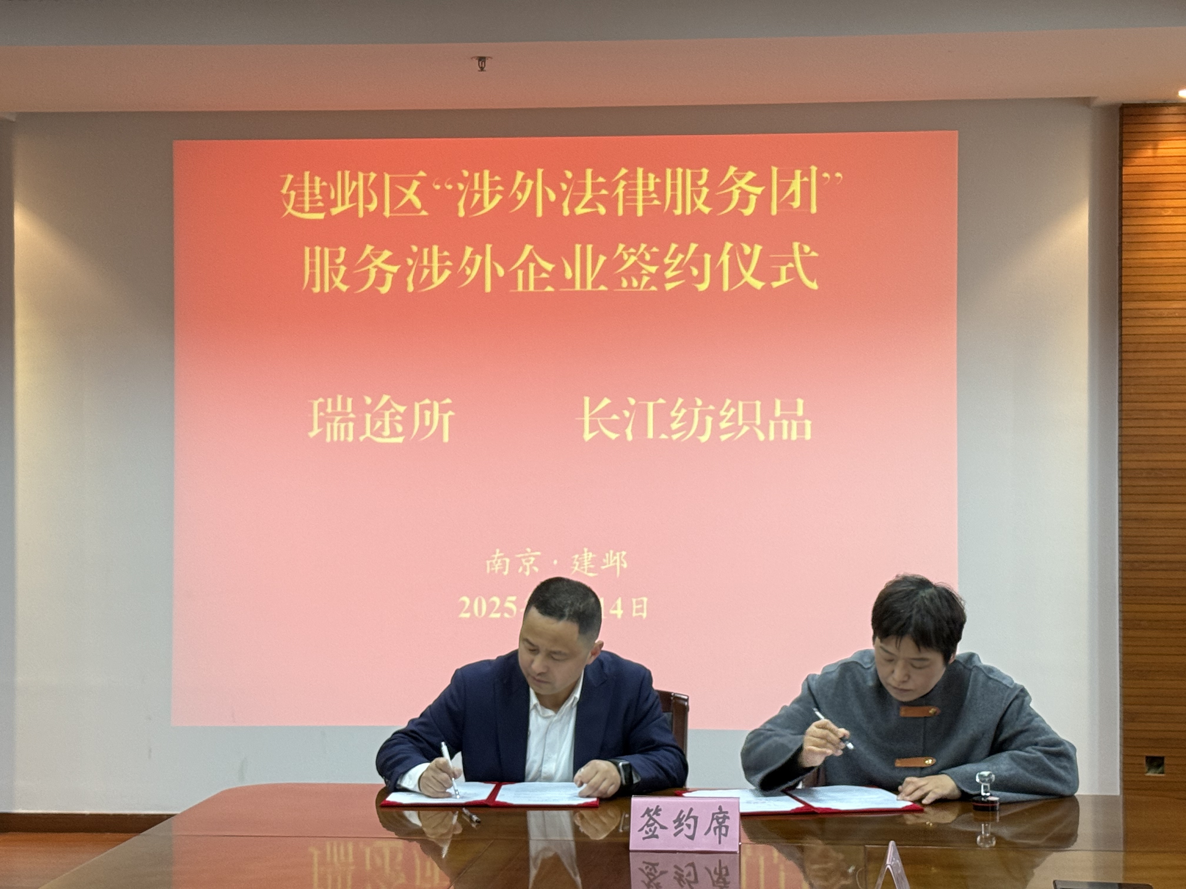 On March 14th, the signing ceremony of the "Foreign Legal Service Team" in Jianye District to serve foreign-related enterprises was successfully held. At the meeting, Jiangsu Rayto Law Firm was officially hired as the foreign-related legal service advisor for Jiangsu Changjiang Textile Trading Co., Ltd.