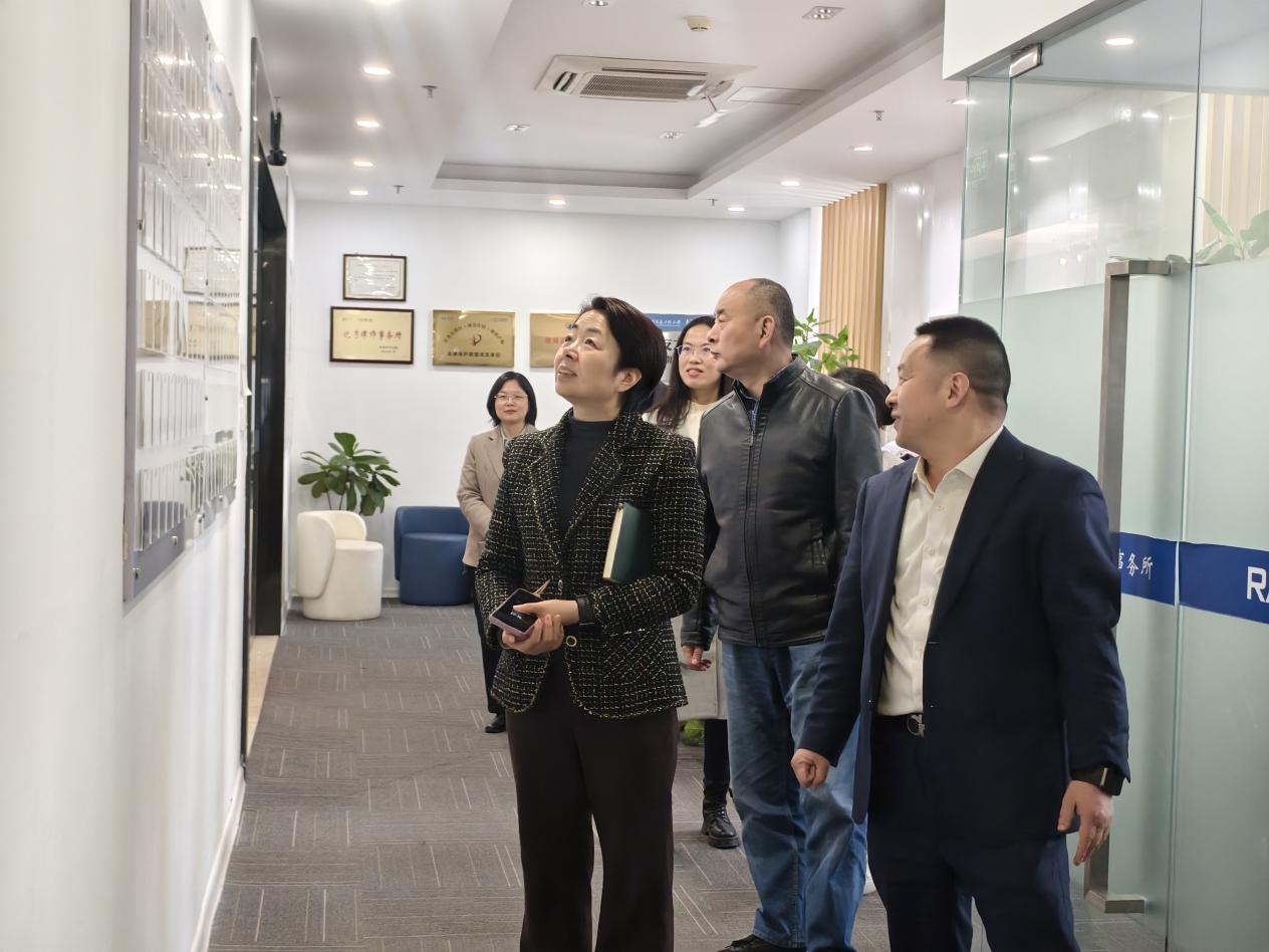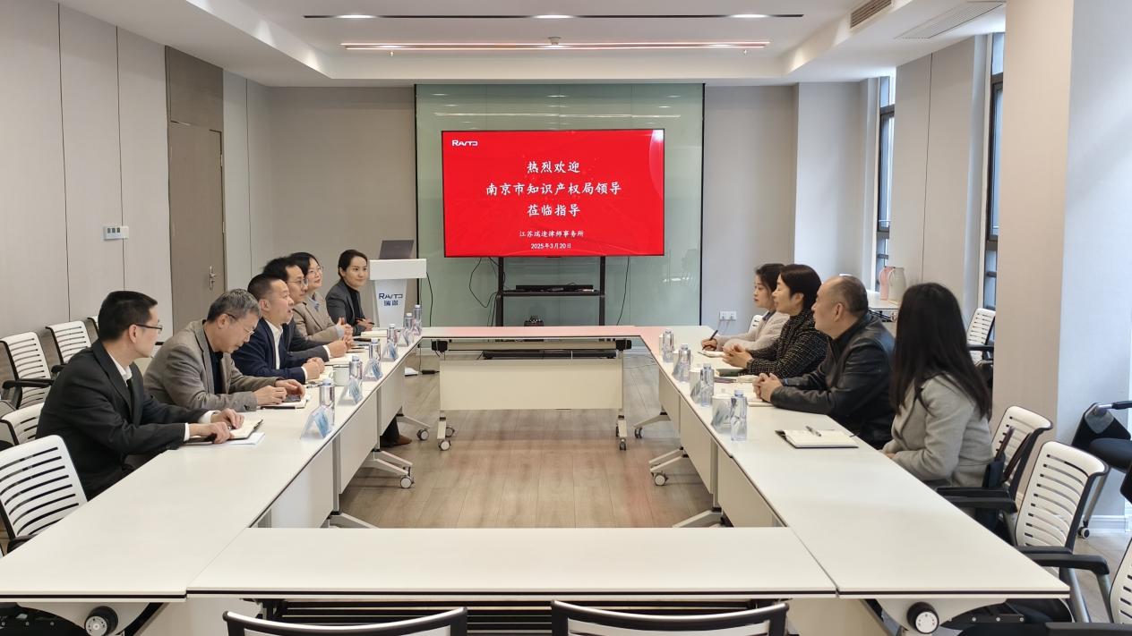 On March 20th, He Huaying, a member of the Party Group and full-time Deputy Director of the Intellectual Property Bureau of the Nanjing Municipal Administration for Market Regulation, Xu Meng, Director of the Intellectual Property Protection Department, Wei Liping, a fourth level researcher, and Yin Jie, a first level chief clerk (seconded from the State Intellectual Property Administration), visited Jiangsu Rayto Law Firm for research and guidance.