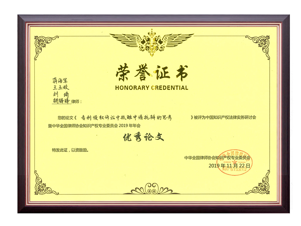 Rayto attorneys' Thesis awarded "2019 Outstanding Paper" by All-China Lawyers Association IP Committee