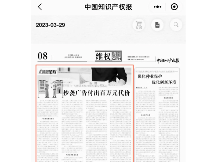 Case handled by Mr. Fengfeng Hu , Ms. Tan Meng spotlighted in China Intellectual Property News
