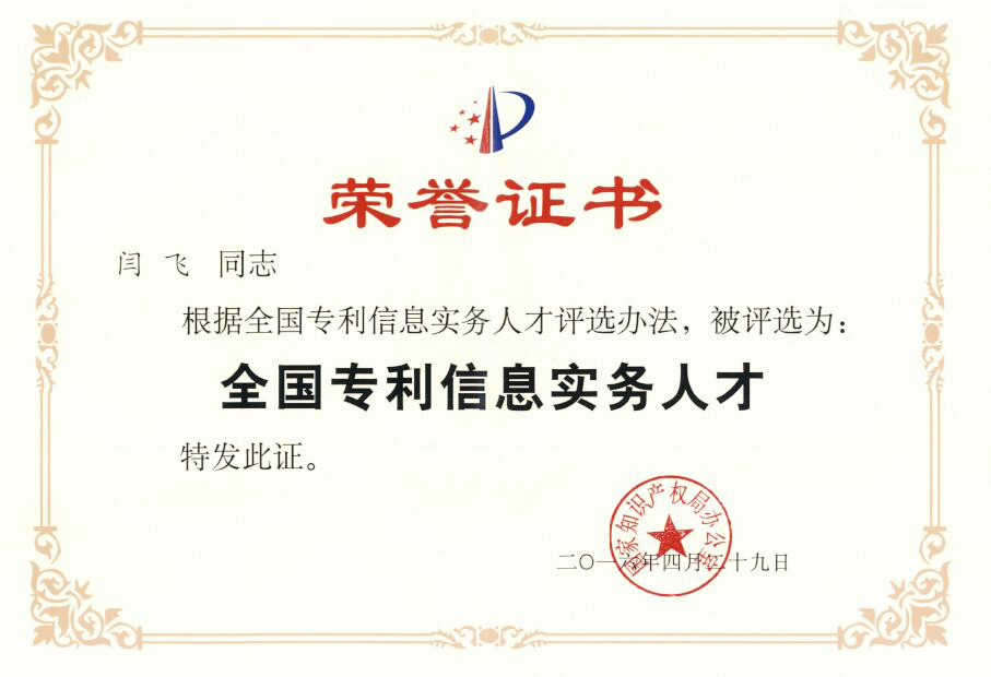 Mr. Fei Yan designated as First-Cohort National Patent Information Specialist