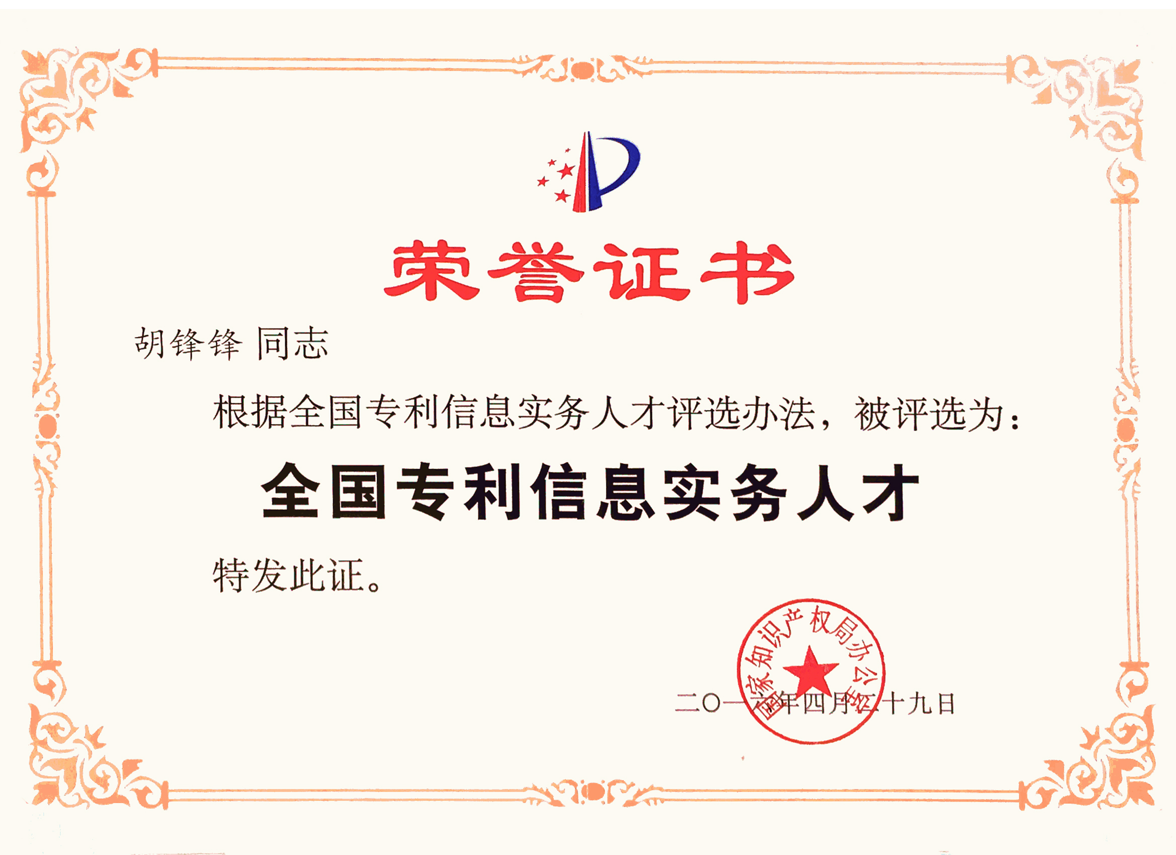 Mr. Fengfeng Hu designated as First-Cohort National Patent Information Specialist