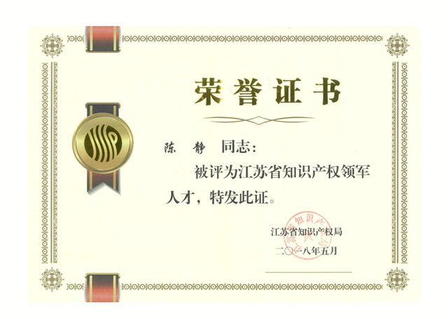 Ms. Jing Chen was recognized as the top Intellectual Property Expert in Jiangsu Province.